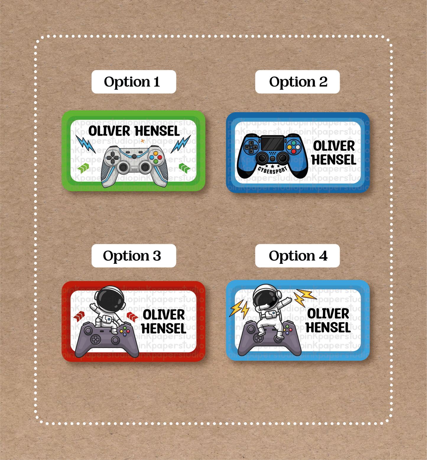 Please specify the required Text or Name to go on the stickers, and the number the OPTION you wish to purchase in the note section during checkout.