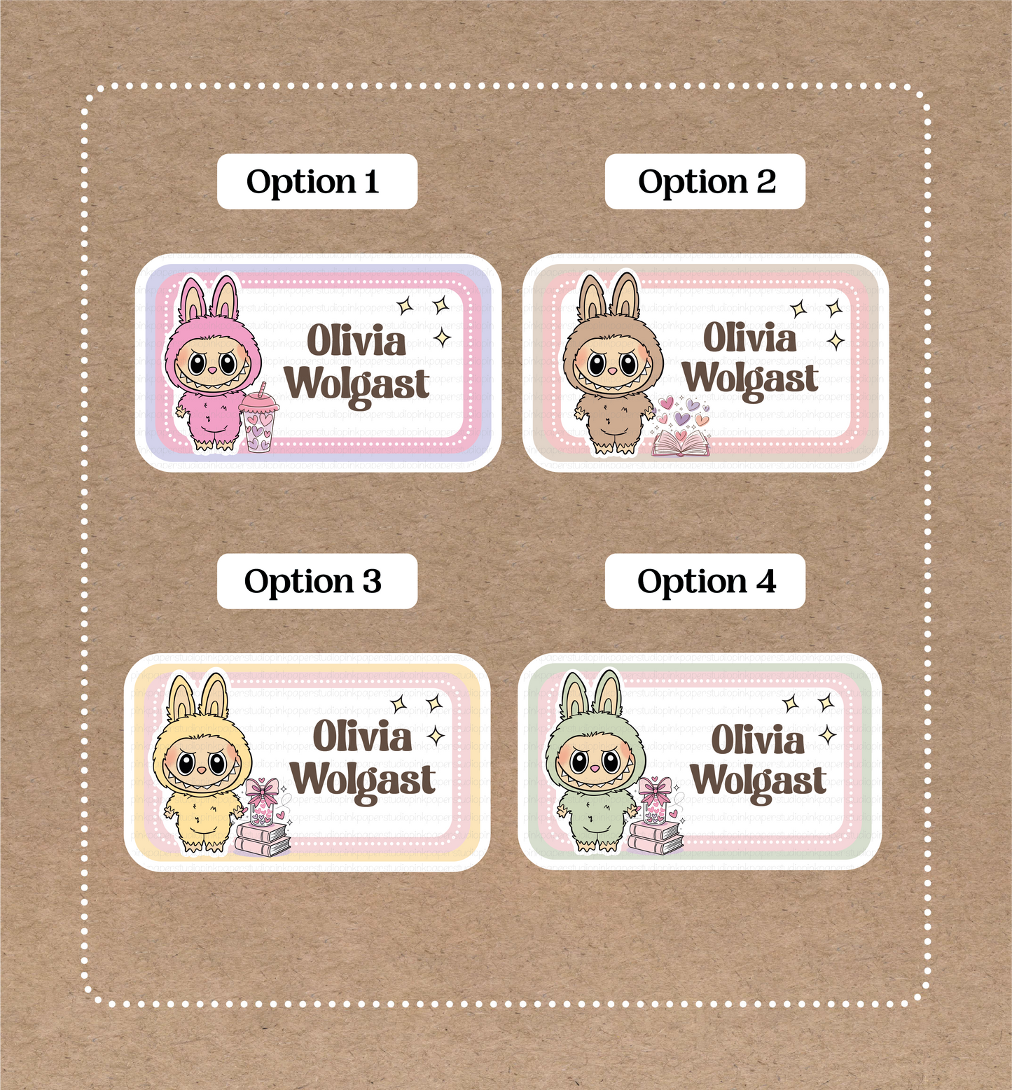 Please specify the required Text or Name to go on the stickers, and the number the OPTION you wish to purchase in the note section during checkout.