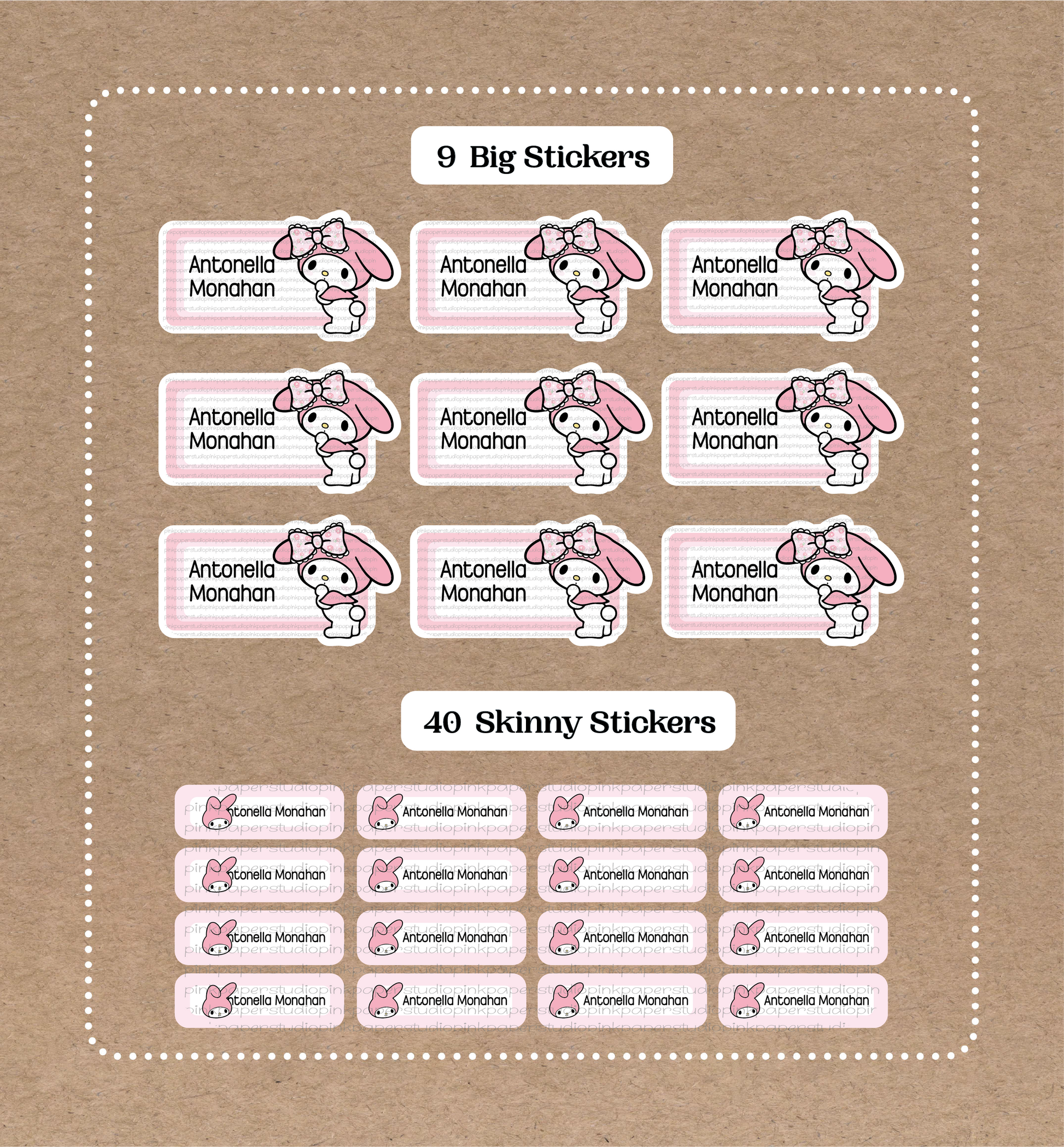 My Melody Set • 9 Big School Name Stickers • 40 Skinny Stickers