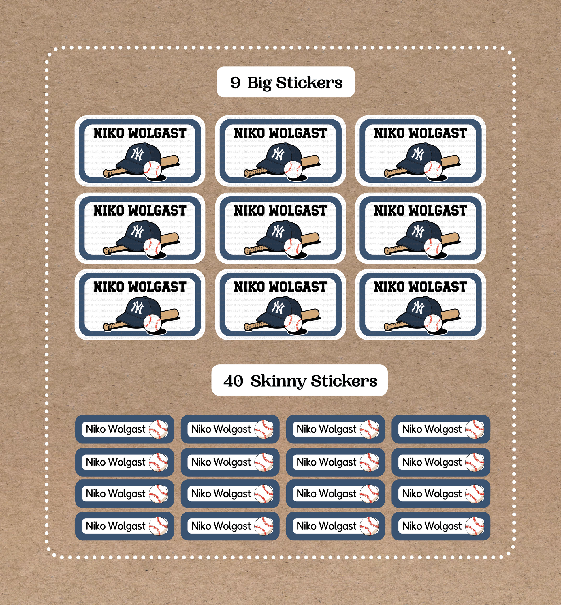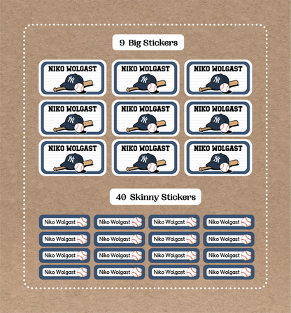 New York Yankees Baseball Stickers - 9 Big School Name Stickers - 40 Skinny Stickers